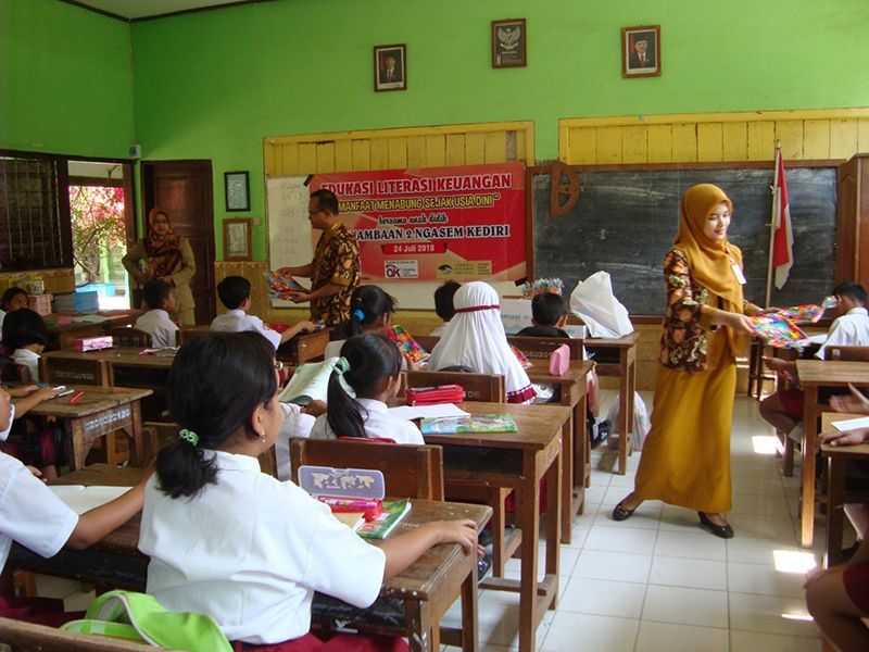 Edukasi Literasi Keuangan yang diadakan di SDN Nambaan 2 Ngasem, Kediri pada tanggal 24 Juli 2018