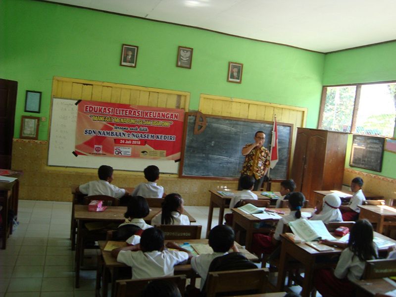 Edukasi Literasi Keuangan yang diadakan di SDN Nambaan 2 Ngasem, Kediri pada tanggal 24 Juli 2018